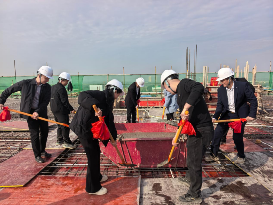 当天上午9时38分,封顶仪式正式开始,恒盈集团董事长及管理团队共同挥锹培土,为产业园浇筑下象征希望与未来的“基石”。目前一期项目已稳定投产,形成了成熟的医疗产品研发与生产体系,为市场提供了高品质的医疗健康解决方案。此次二期项目封顶,将在一期基础上实现全方位能级跃升:未来这里将打造集高端医疗器械规模化生产、核心技术研发创新、产业链配套服务于一体的现代化产业载体,部署自动化生产线与定制化研发实验室,引入先进检测设备与专业技术人才,全面提升产品产能与创新效率,实现从“量产”到“质造”的跨越。